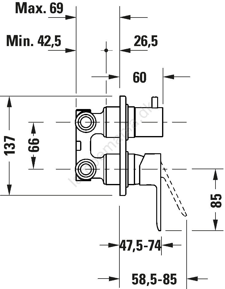 • Armaturet er udstyret med en omskifter, der styrer to udløb, f.eks. badekar og bruser.