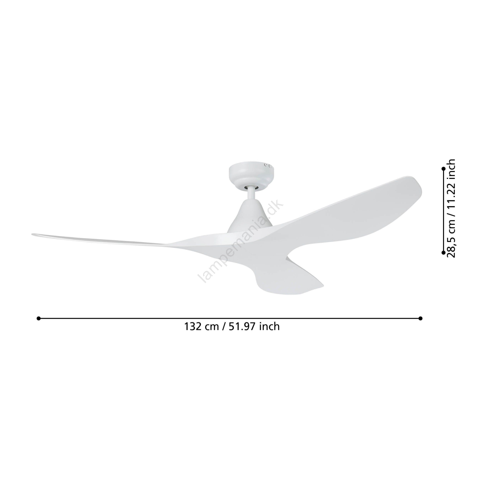 • Eglo - Loftventilator Ø 132 cm hvid + fjernbetjening