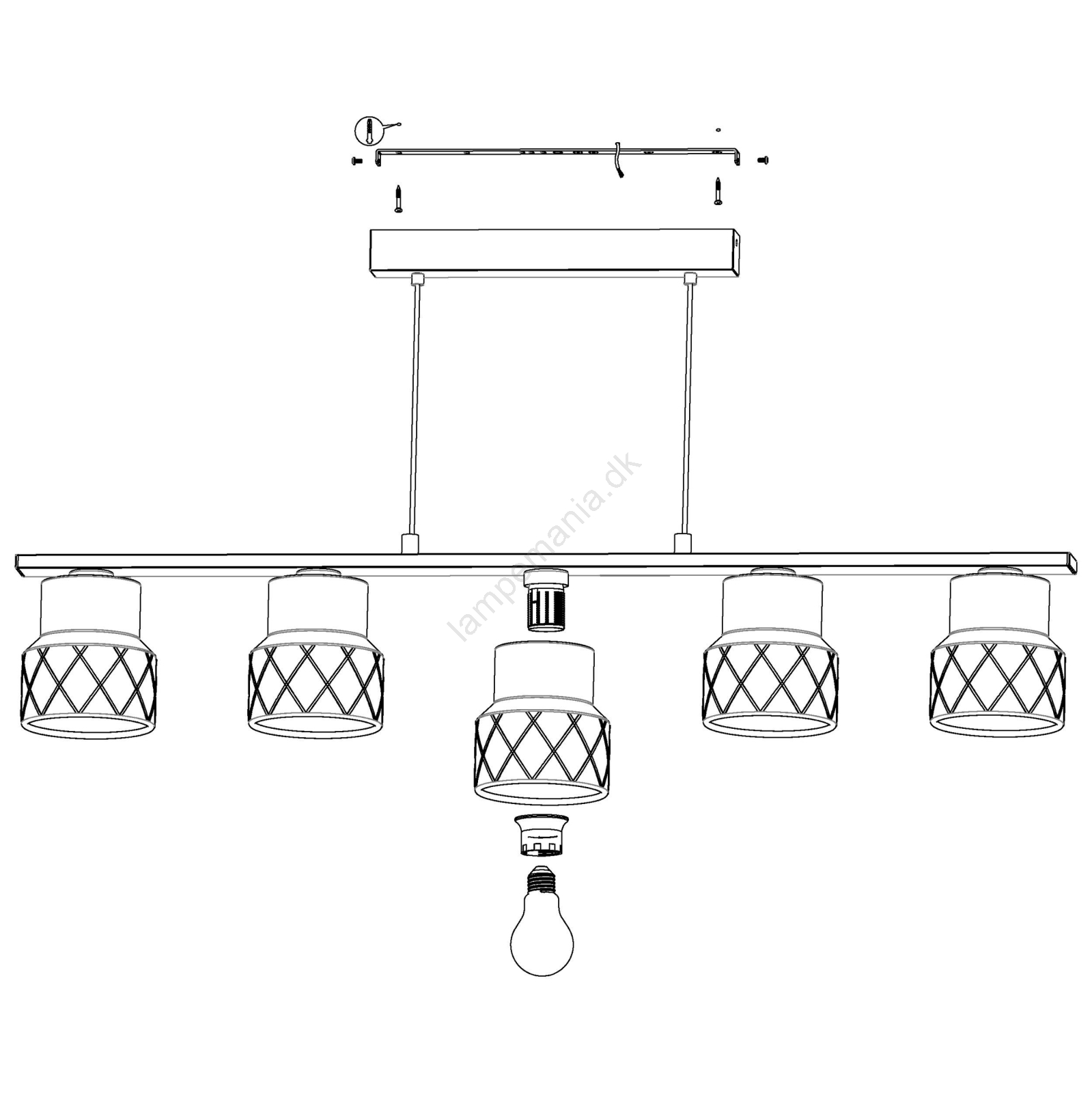 Eglo 39855 - Pendellampe på ledning HILCOTT 5xE27/40W/230V er kendetegnet ved et flot og funktionelt design.  En lyspære med E27-fatning passer til denne lampe. Her kan du købe andre pærer til fordelagtige priser. Du får en interessant tilføjelse til dit hjem.