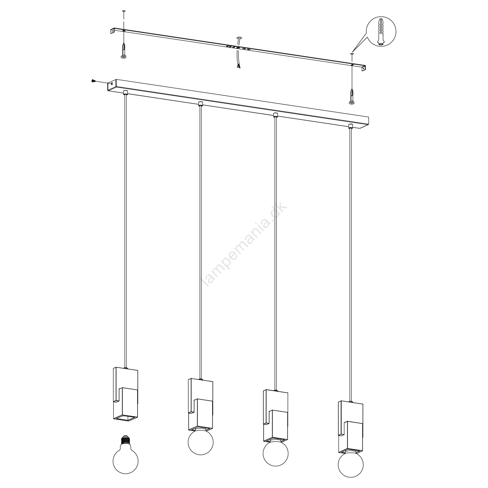 Eglo 99532 - Pendel på ledning LOBATIA 4xE27/40W/230V er kendetegnet ved et flot og funktionelt design.  En lyspære med E27-fatning passer til denne lampe. Her kan du købe andre pærer til fordelagtige priser. Du får en interessant tilføjelse til dit hjem.
