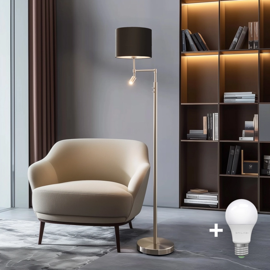 Eglo - LED gulvlampe TUNJA 1xE27/60W/230V + LED/2,1W Ø 30 cm mat krom/brun