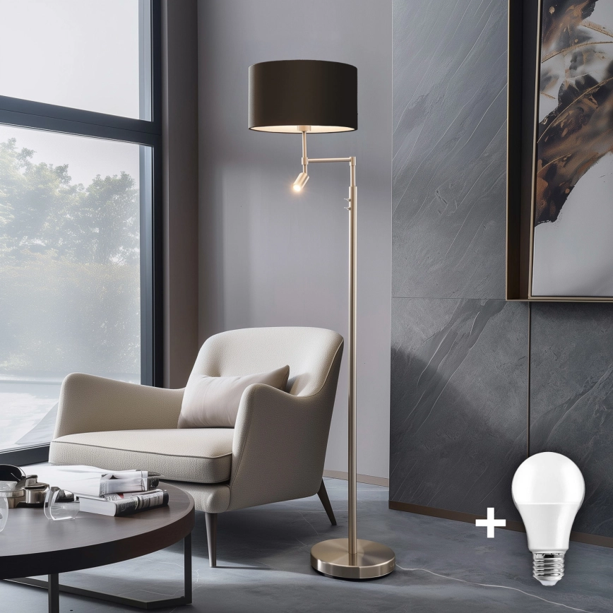 Eglo - LED gulvlampe TUNJA 1xE27/60W/230V + LED/2,1W Ø 38 cm mat krom/brun