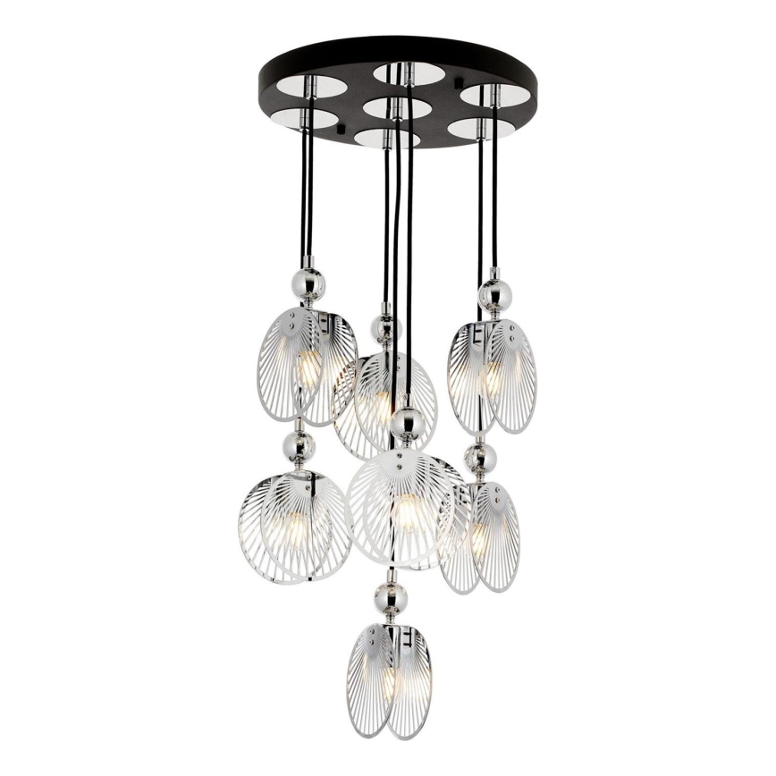 Elegant lysekrone på ledning med 7 fatninger (E27), maks. 40 W pr. pære, 230 V, poleret krom