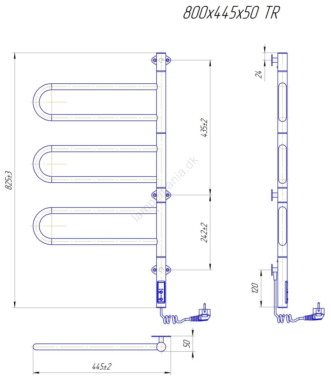 • Elektrisk håndklædetørrer til badeværelset med indbygget termostat.