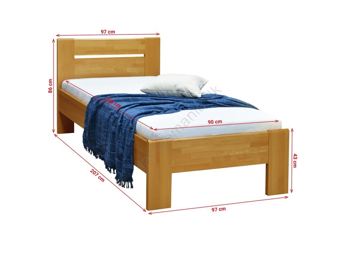 • Den står på massive, høje træben, som sikrer sengens stabilitet.