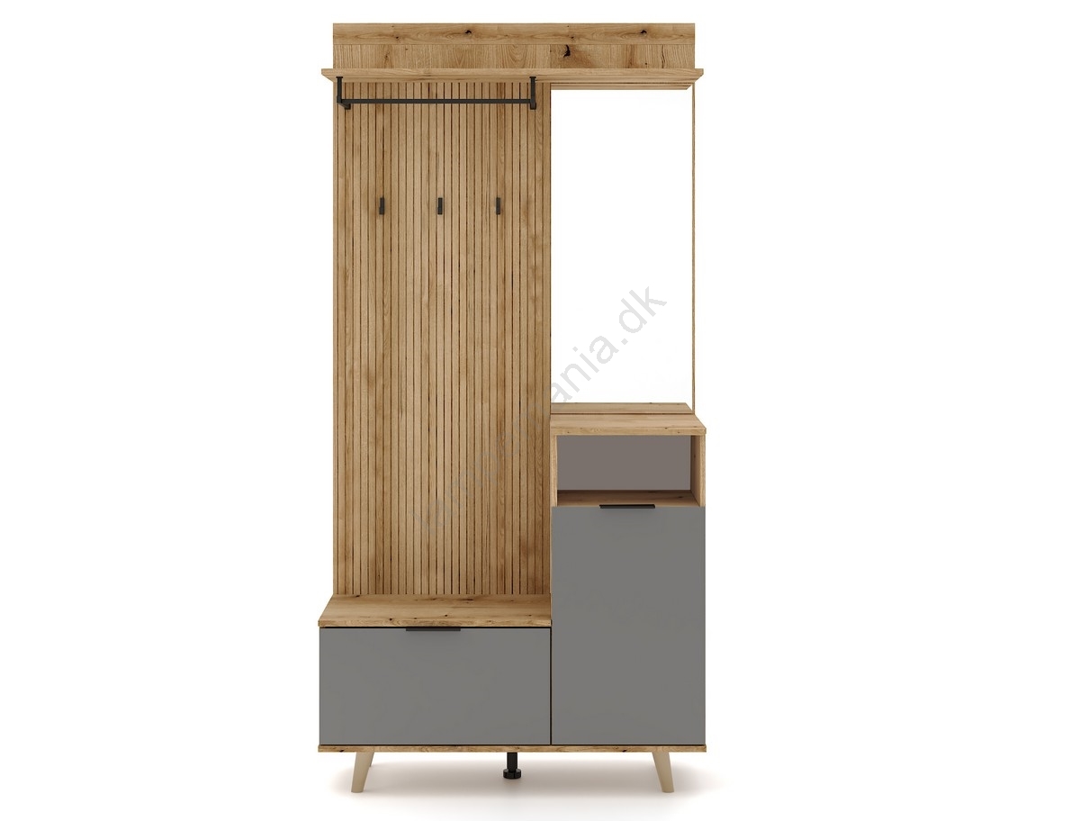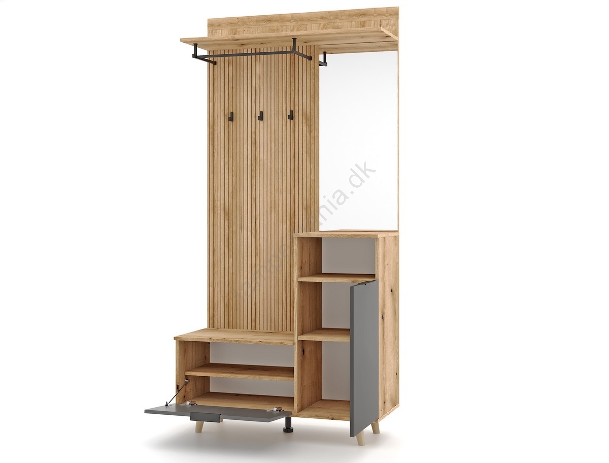 • Åben hylde, kroge, frakkestang og et stort spejl giver præcis det, du har brug for.