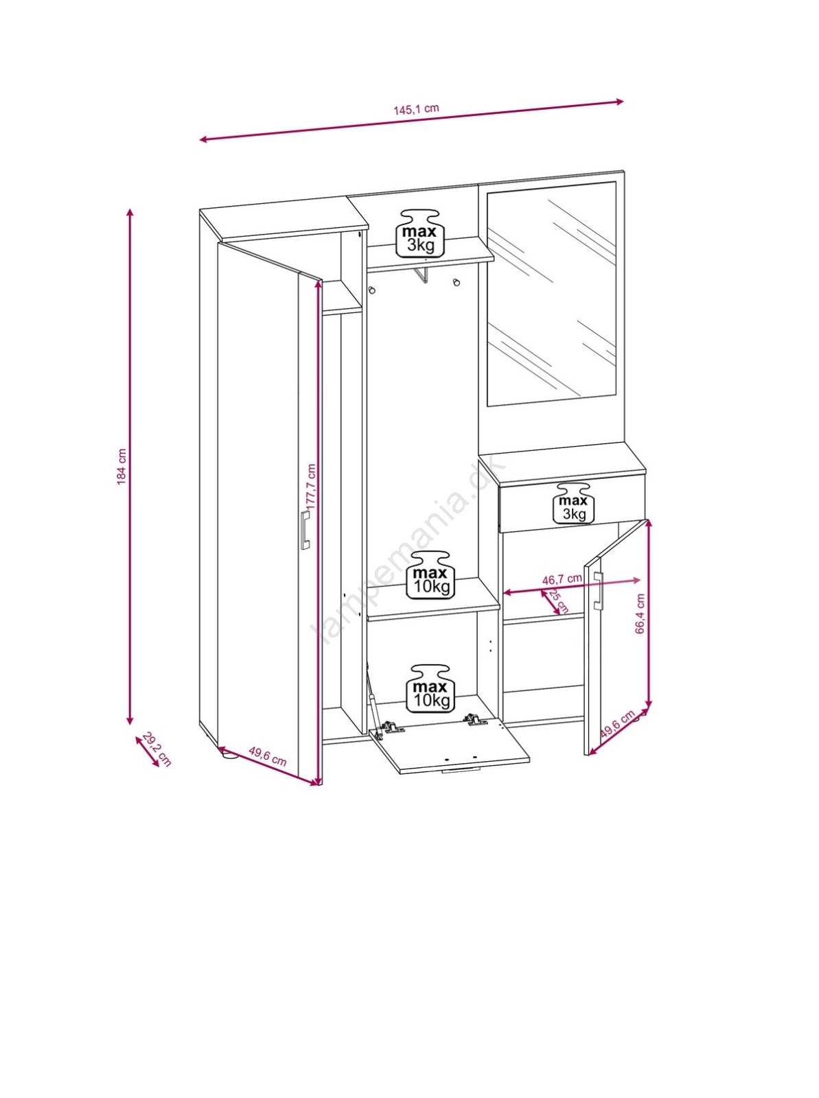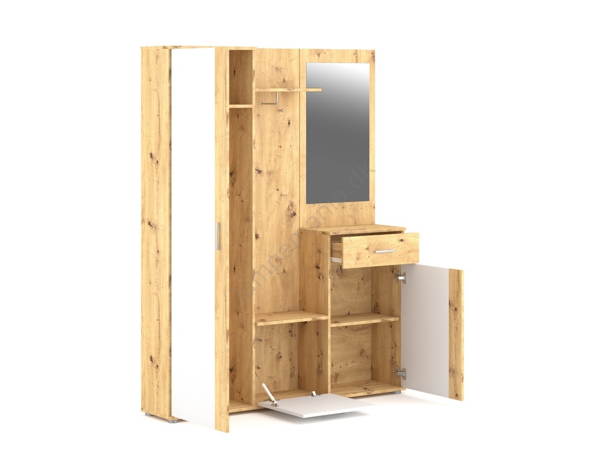 • Det høje skab i siden hjælper dig med at hænge og gemme dine frakker og jakker.