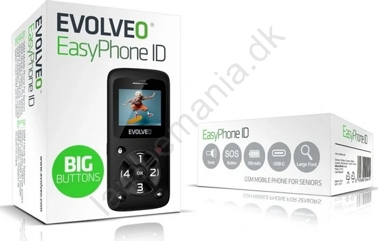 Evolveo - EasyPhone ID, mobiltelefon til ældre, sort