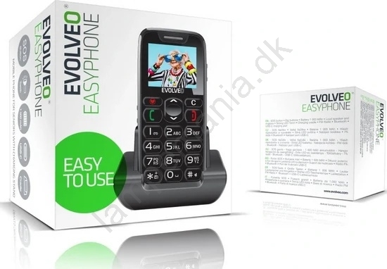Evolveo - EasyPhone, mobiltelefon til ældre, sort