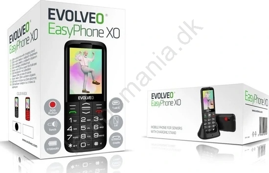 Evolveo - EasyPhone XO, mobiltelefon til ældre, sort