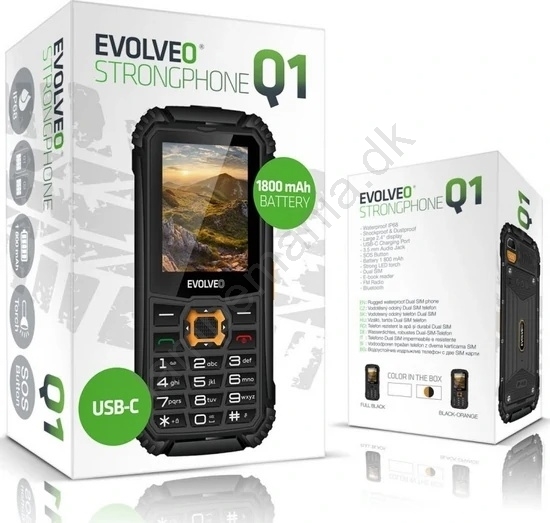 Evolveo - StrongPhone Q1, vandtæt Dual-SIM-telefon, sort-orange