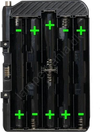 • Strømforsyning: 10 x AA 1,5V LR6-batterier eller valgfrit Li-Ion-batteri BAT3.