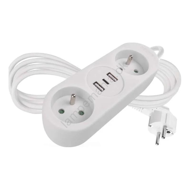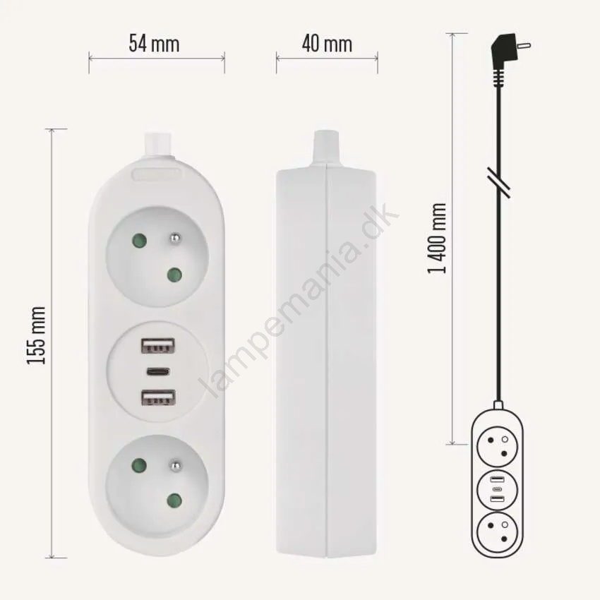 Forlængerledning med 2 stikkontakter + 2x USB-A + USB-C, 1,4 m