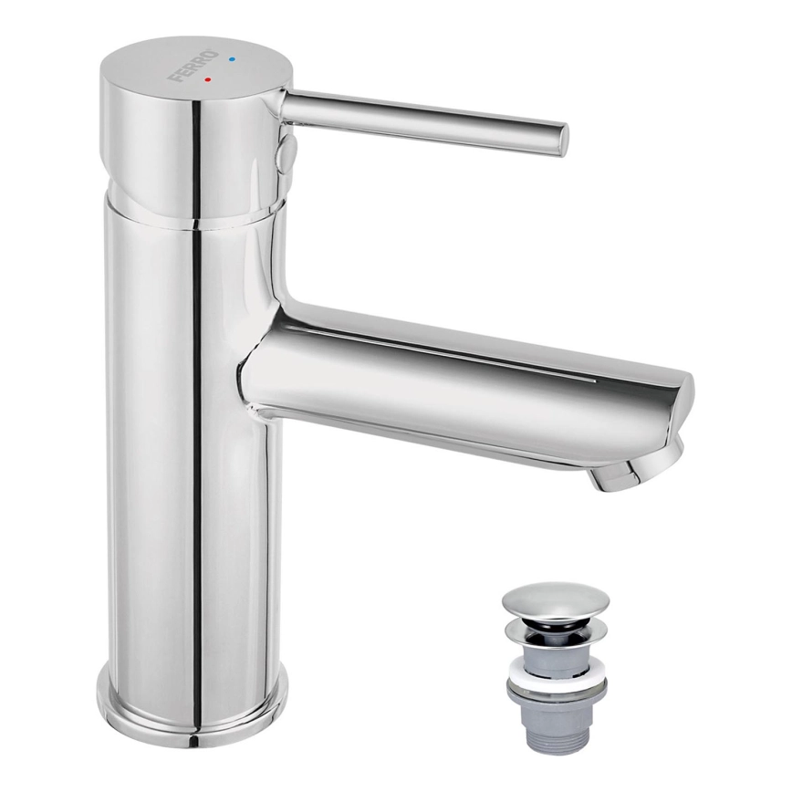 FERRO - Håndvaskarmatur + bundventil FIESTA i poleret krom