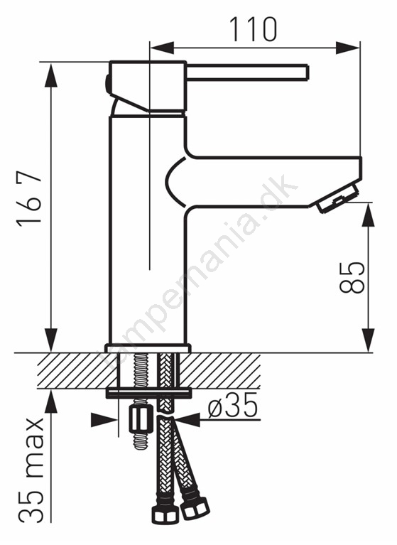 • Pakken indeholder click-clack bundventil og tilslutningsslanger.