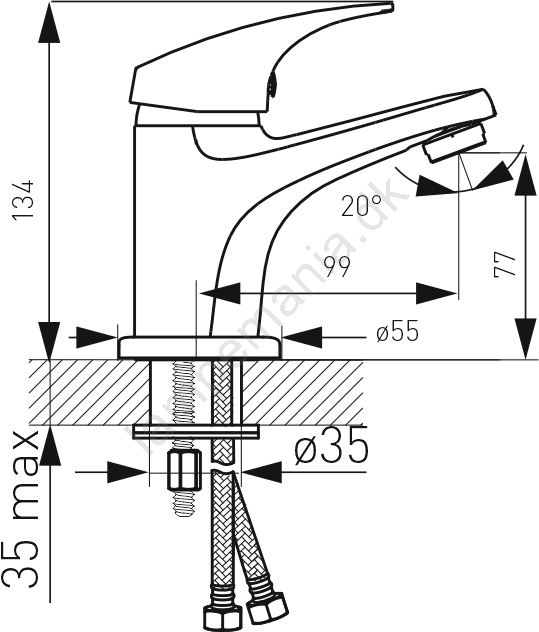 • Leveres med click-clack bundventil og tilslutningsslanger.
