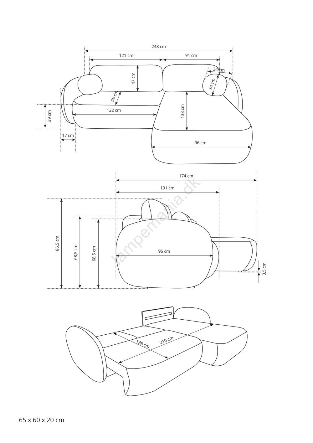 • Sofaen har et rummeligt opbevaringsrum til opbevaring af sengetøj og andre sæsonbestemte ting.
