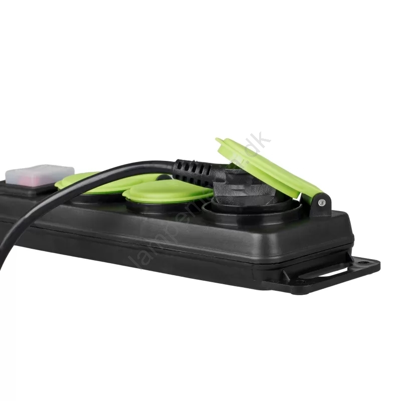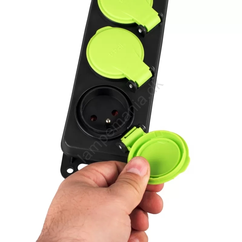 • Automatisk lukkende, fjederbetjente dæksler på udtagene beskytter mod fugt, regn og snavs.