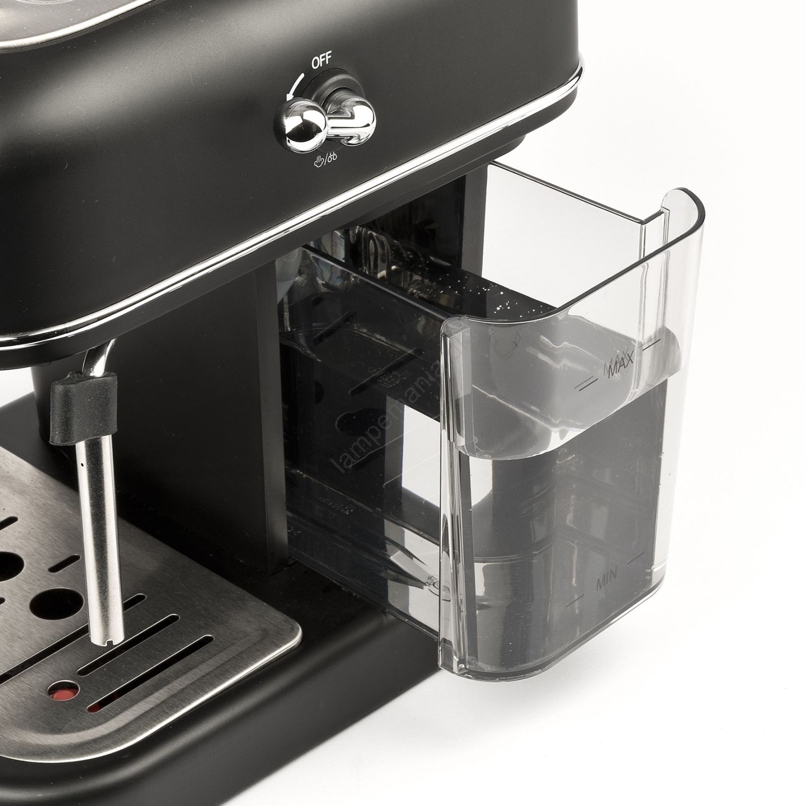 • Den fuldt aftagelige drypbakke og vandtank gør regelmæssig rengøring og vedligeholdelse let.