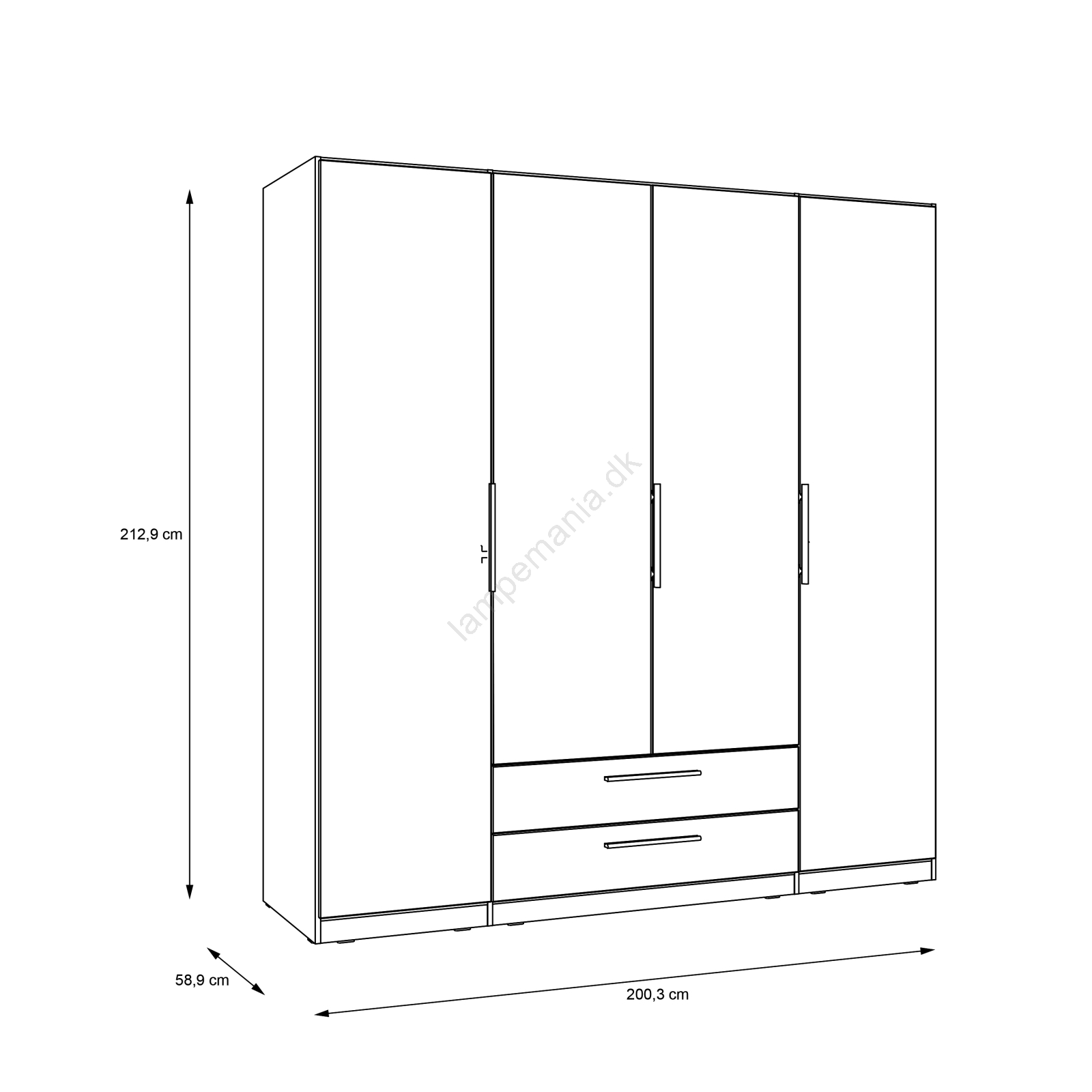 • Skabet rummer tøjstænger, skuffer, hylder og masser af opbevaringsplads til dit tøj, tasker og sæsonvarer.