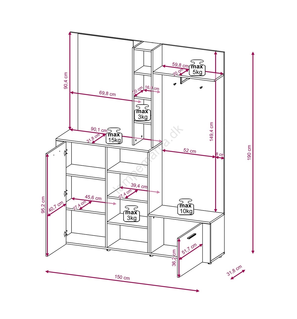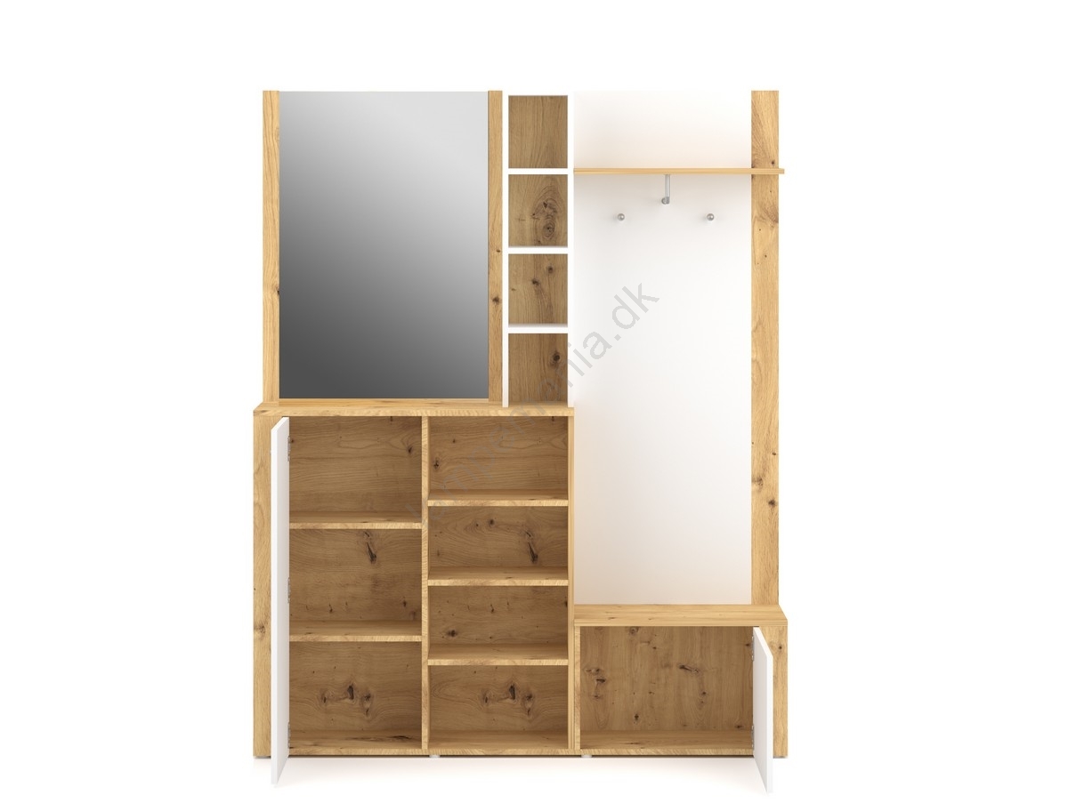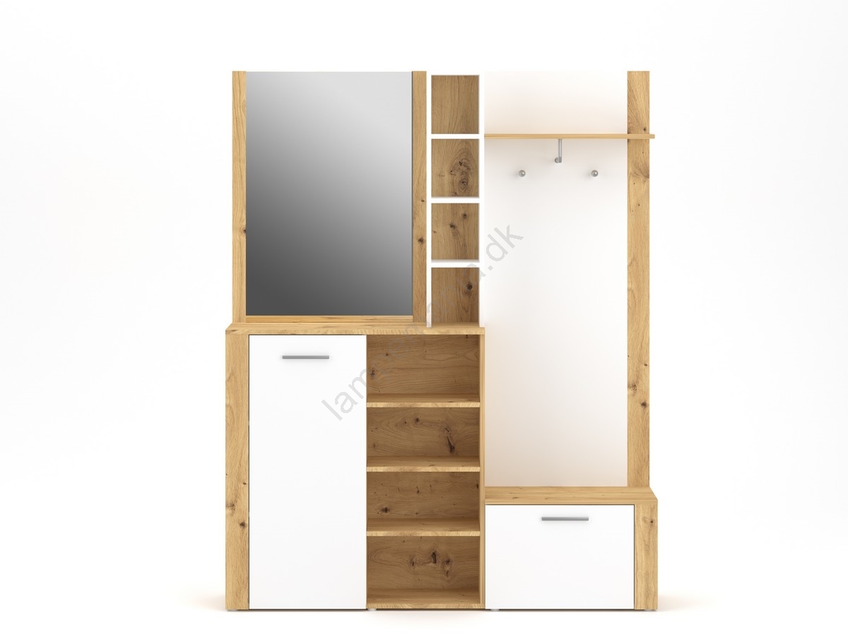 • Åbne hylder, kroge, bøjlestang til overtøj og et stort spejl tilbyder præcis det, du har brug for.