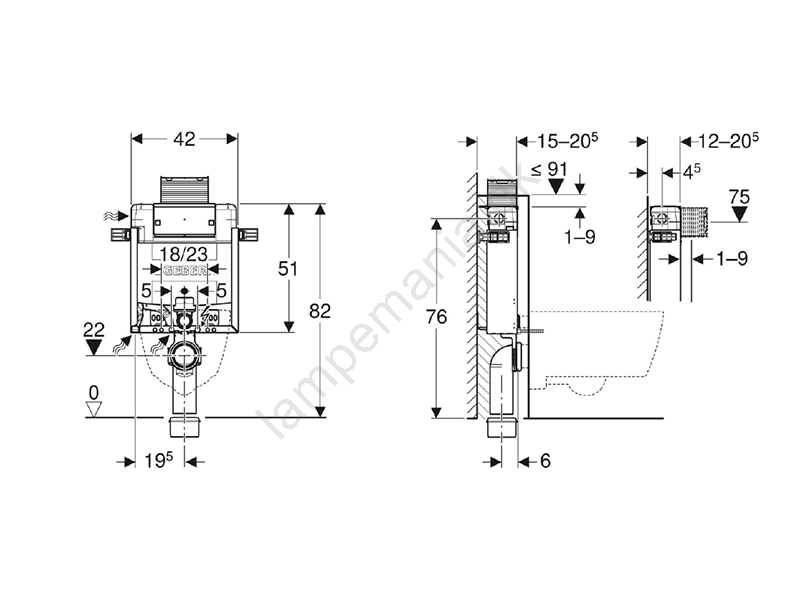 Geberit 110.000.00.1 - Indbygningsmodul til væghængt toilet Kombifix 82 cm