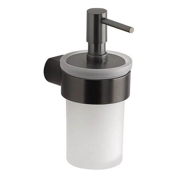 Gedy - Vægmonteret sæbedispenser PIRENEI 110 ml matteret glas/metallicgrå