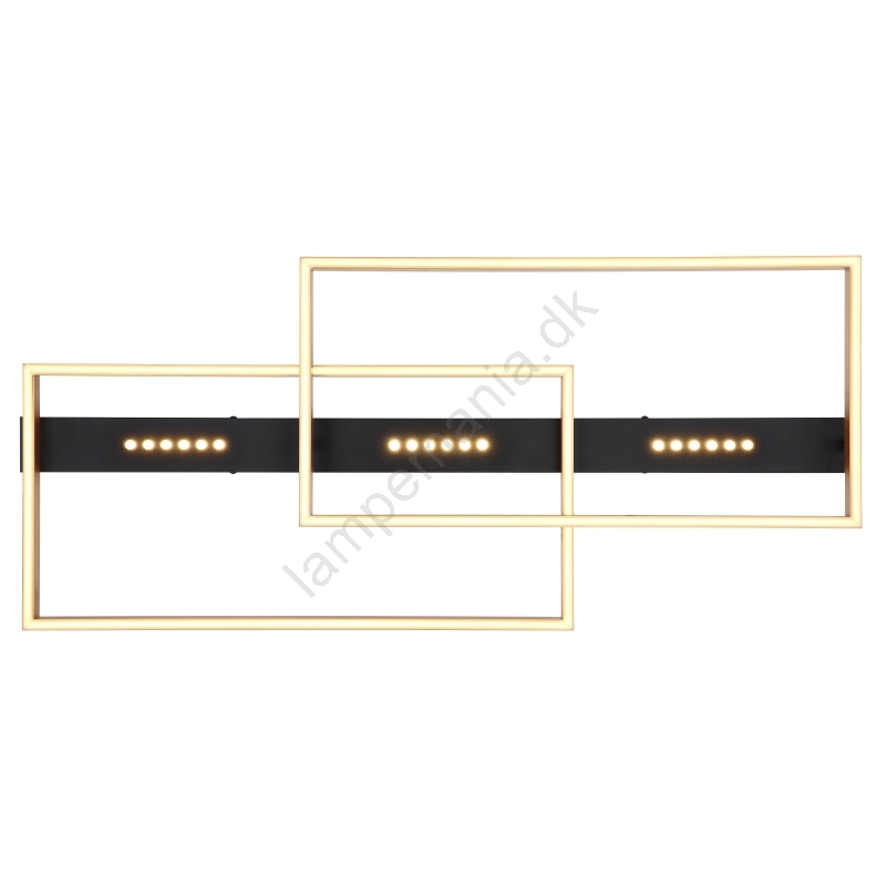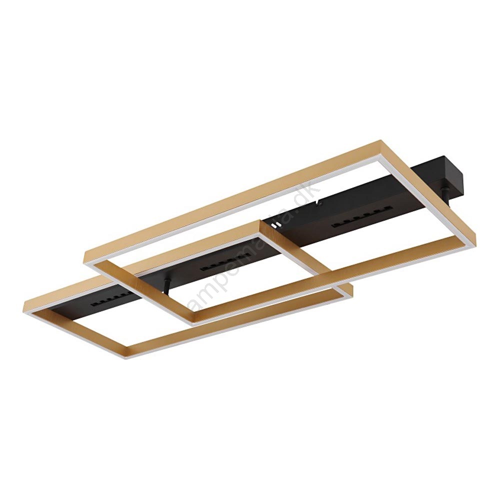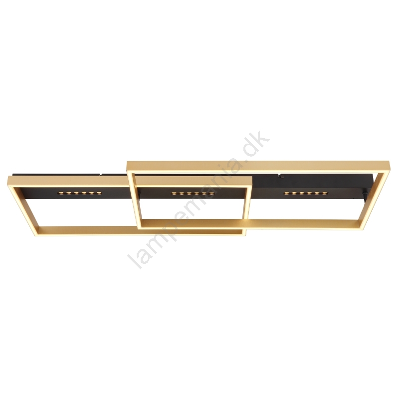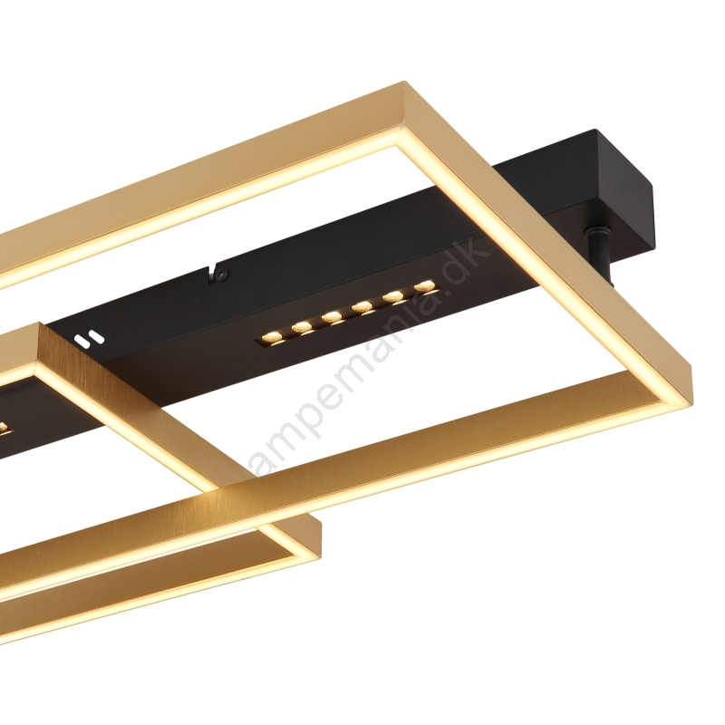 • Loftlampen har et mat sort metal loftbeslag med to gyldne, rektangulære LED-paneler, som giver et stilfuldt og tidløst udtryk.