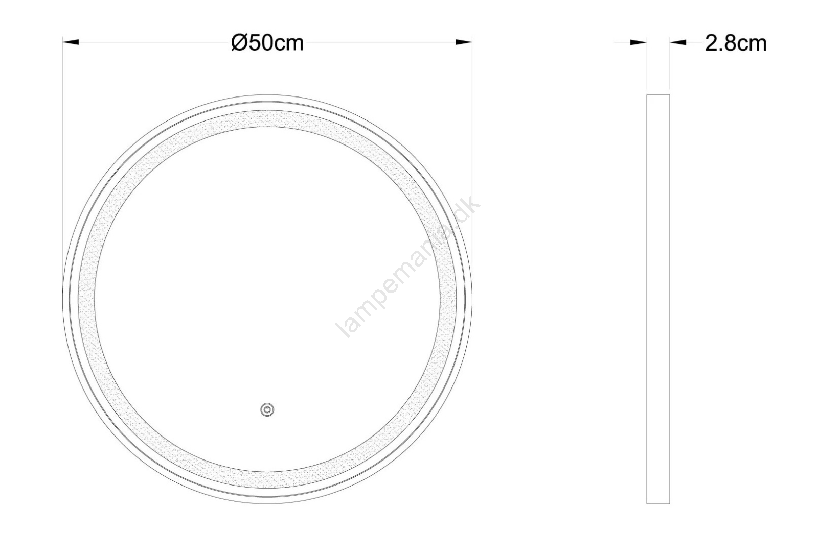 • Der er en berøringsknap i bunden af spejlet til tænd/sluk og justering af lysstyrken.