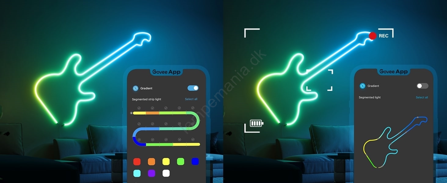 • Tilpas farven på hver sektion af LED-båndet, og skab et unikt lys, der matcher dine præferencer, din stil og dit humør.