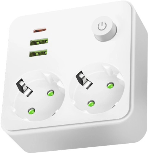 Grenstik med afbryder LINEA 2x230V + 3xUSB A/C SCHUKO hvid