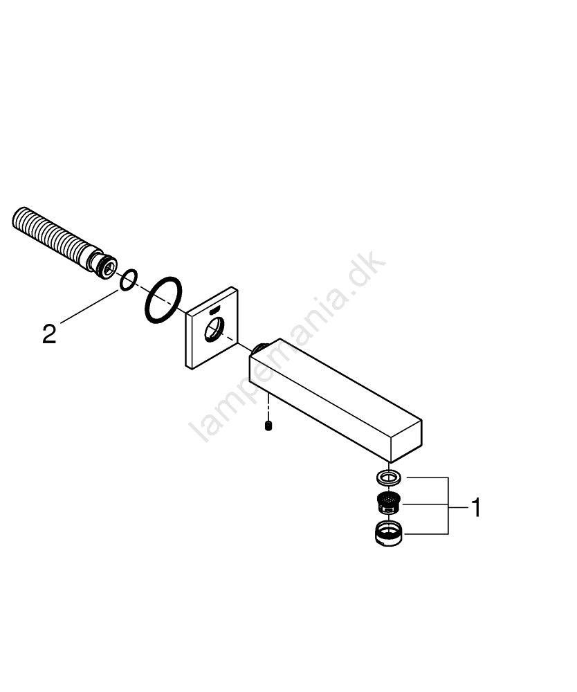 • Vægmonteret badekarsudløb med moderne kantet design.