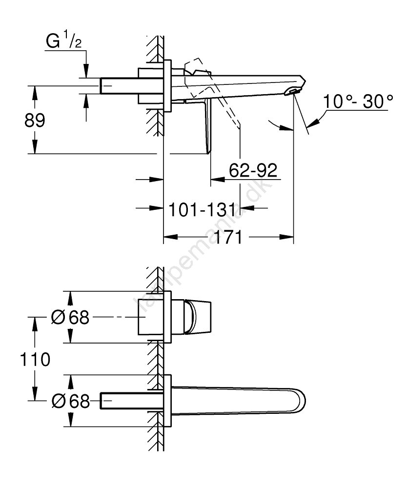• Minimum anbefalet vandtryk er 1,0 bar for optimal ydeevne.