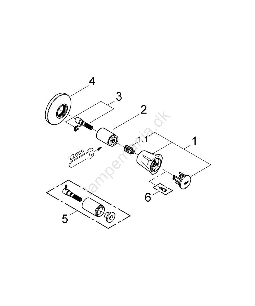 • Overdel til GROHE indbygningsventiler i størrelserne 1/2", 3/4" og 1".