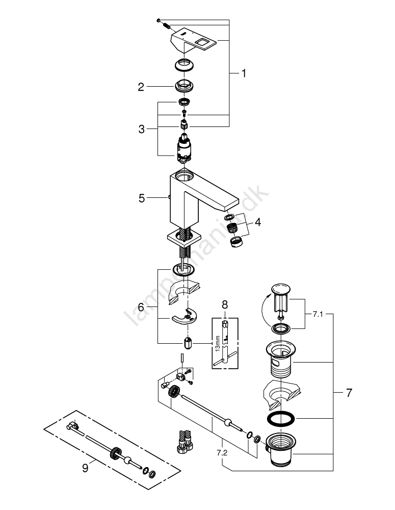 • Moderne et-grebs håndvaskarmatur GROHE Eurocube med elegant kantet design.