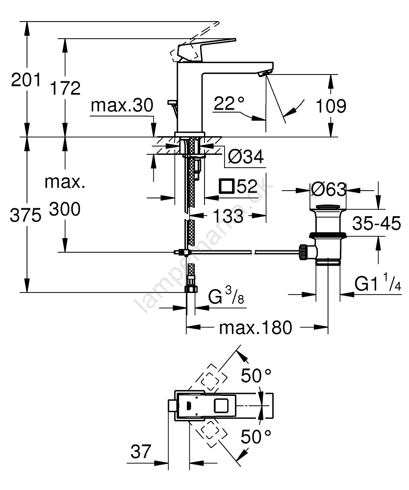 • GROHE Water Saving-teknologi reducerer vandforbruget til maksimalt 5 l/min samtidig med, at den bevarer optimal gennemstrømning.