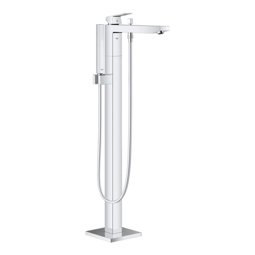 • Gulvmonteret etgrebs badekarbatteri GROHE Eurocube med moderne kubistisk design til fritstående badekar.