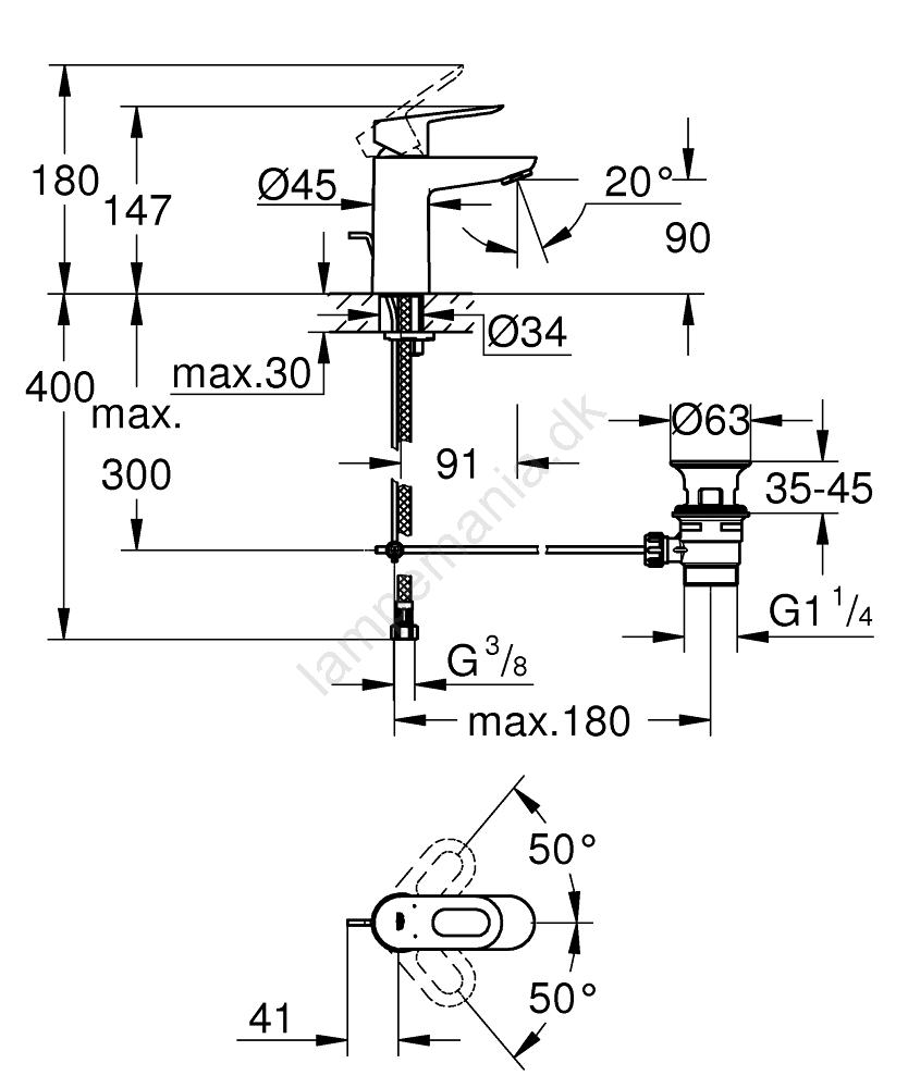 • Armaturets højde 180 mm og tudens længde 91 mm for komfortabel brug.