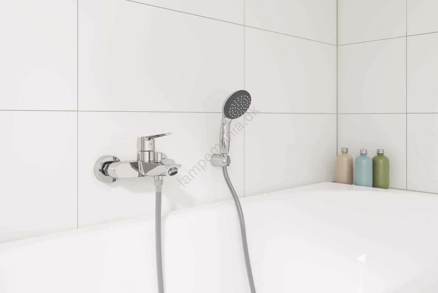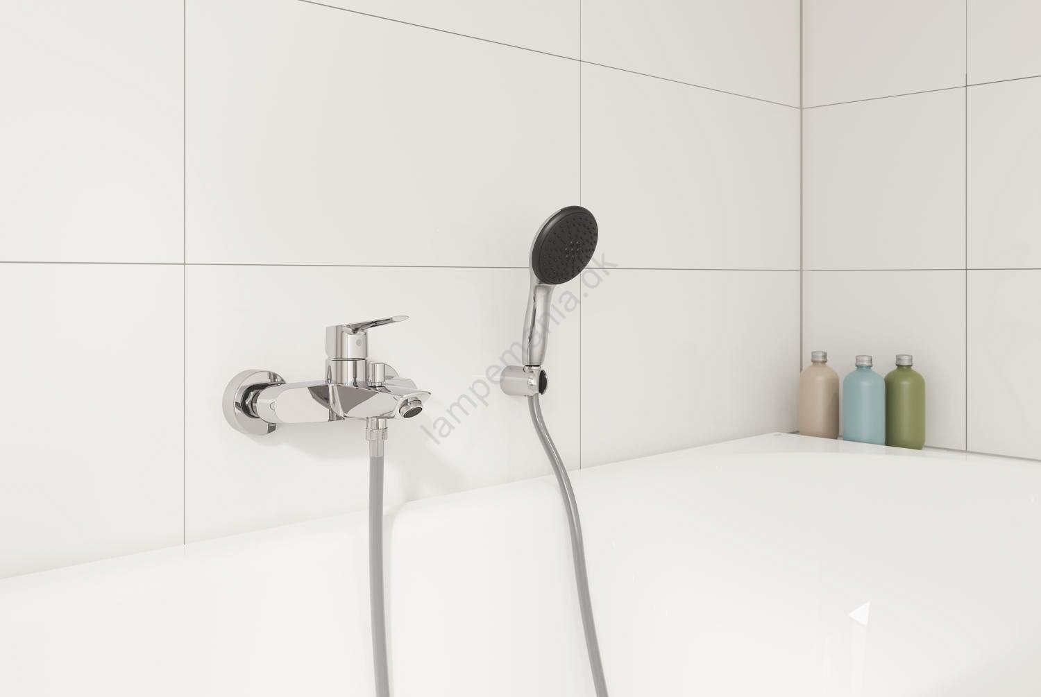 • Vægmonteret etgrebs-badbatteri med moderne design.