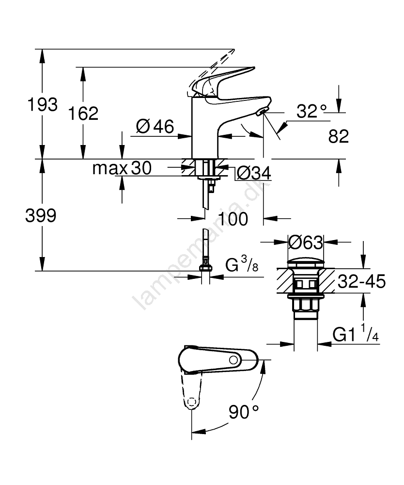 • Armaturhøjde 162 mm og tudlængde 100 mm for optimal komfort.