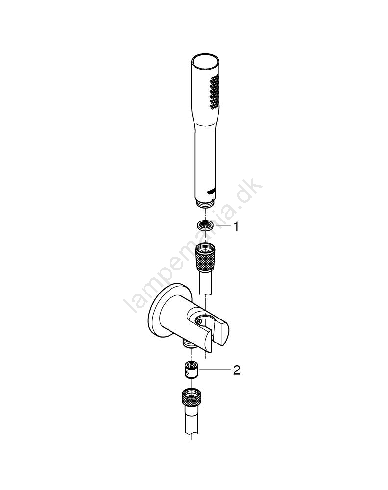 • Sættet indeholder en 1/2" vægavgang (afløbsbøjning) med vægbeslag til håndbruser.