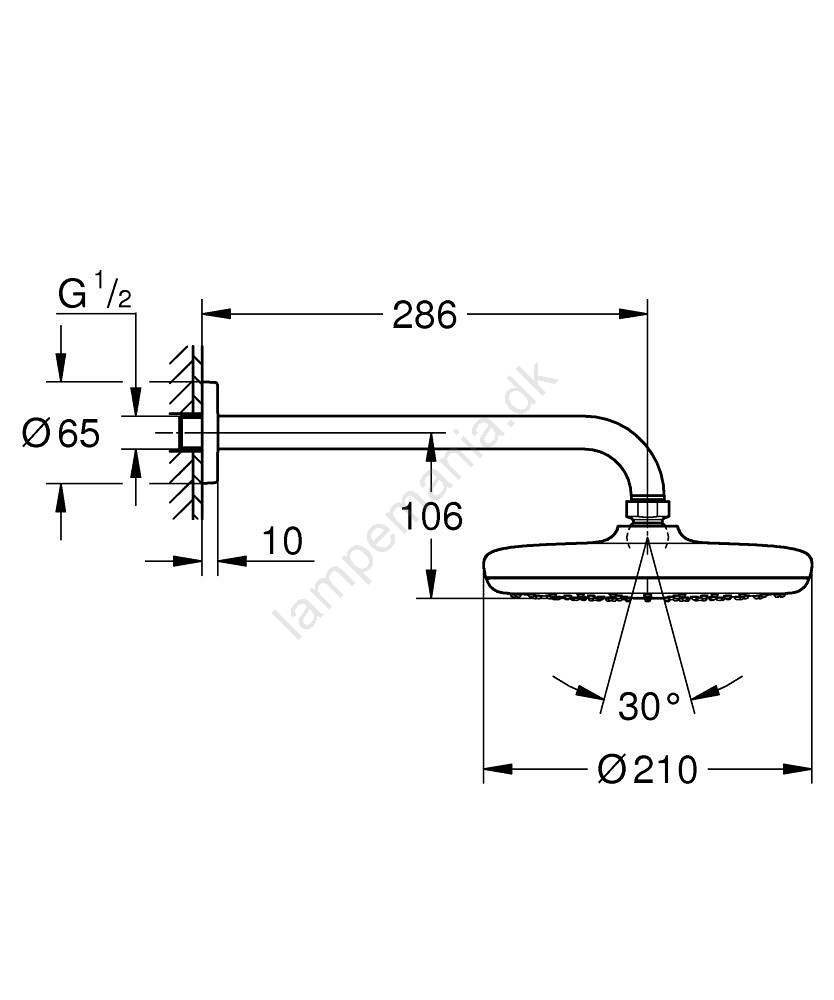 • Medfølger Rainshower-brusearm på 286 mm for nem installation.