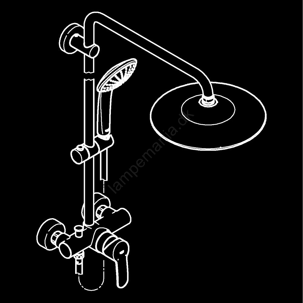 • Vægmonteret bruserbatteri med greb og omskifter, som gør det nemt at skifte mellem bruserhoved og håndbruser.