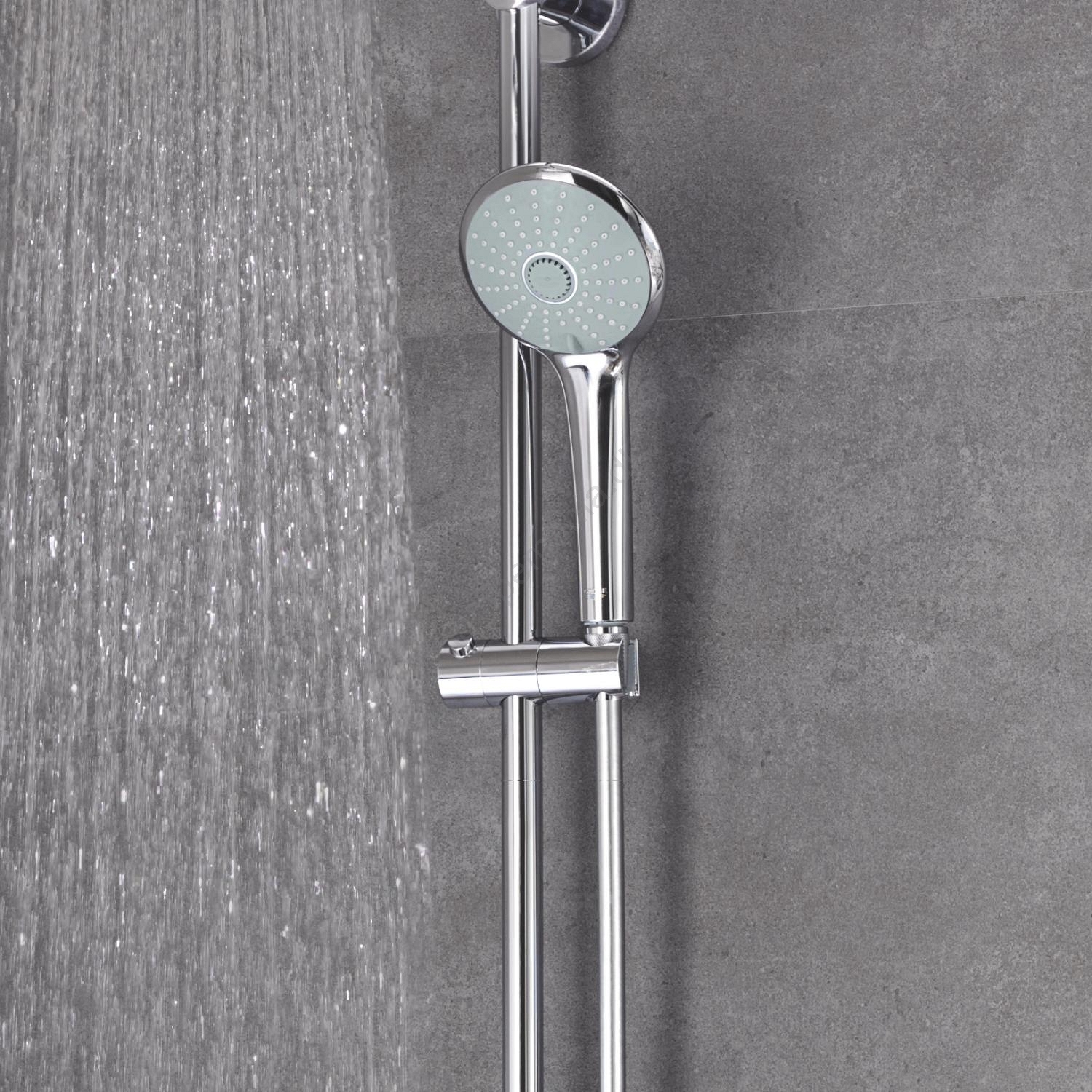 • Termostatisk blandingsbatteri med Aquadimmer-funktion for nem omstilling mellem hoved- og håndbruser.