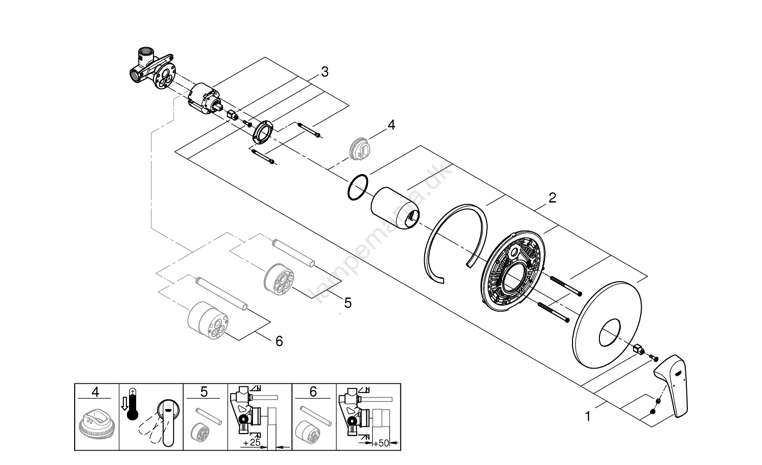 • GROHE Long-Life 46 mm keramisk patron for jævn kontrol over temperatur og vandgennemstrømning.