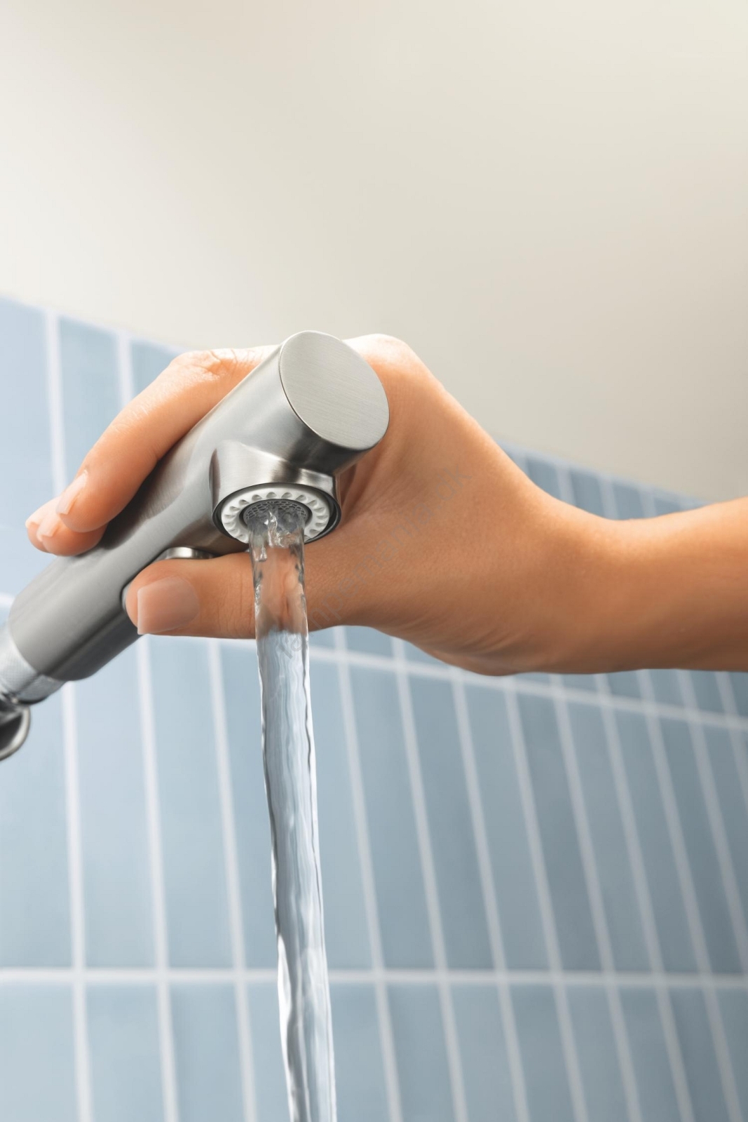 • Udtrækkeligt dobbelt brusehoved giver mulighed for skift mellem almindelig stråle og brusestråle for maksimal fleksibilitet.