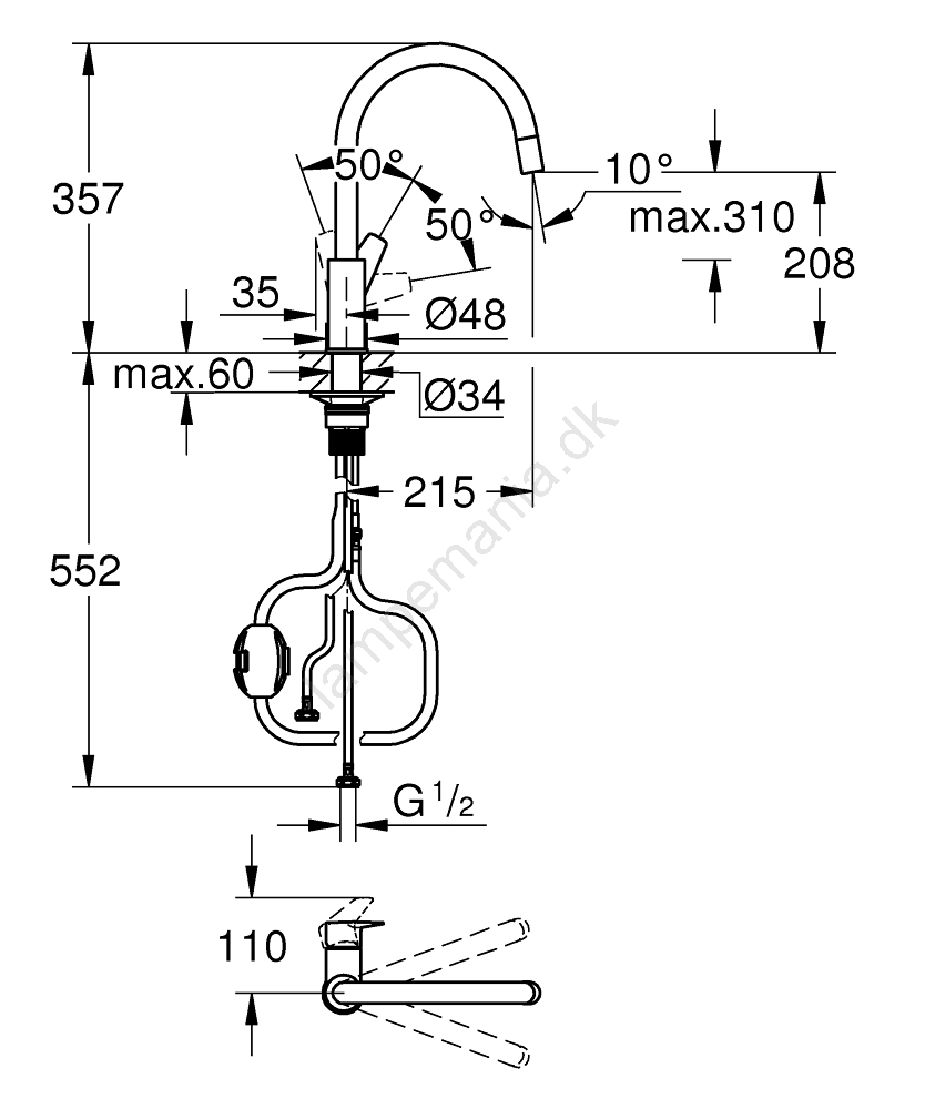 • Anbefalet minimum vandtryk 1,0 bar for optimal ydeevne.