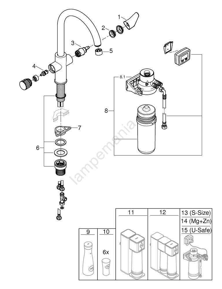 • Systemet er kompatibelt med forskellige GROHE Blue-filtre, hvilket gør det muligt at tilpasse efter individuelle behov.
