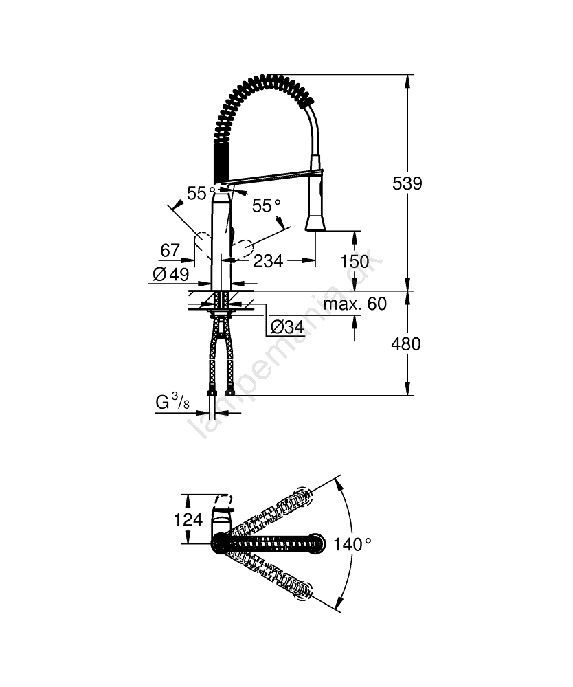 • Drejelig tud med 140° drejevinkel for nem adgang til alle dele af vasken.