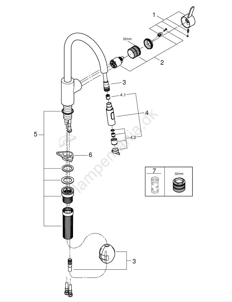 • GROHE EasyDock sikrer nem indføring og glat fastholdelse af den udtrækkelige bruser.